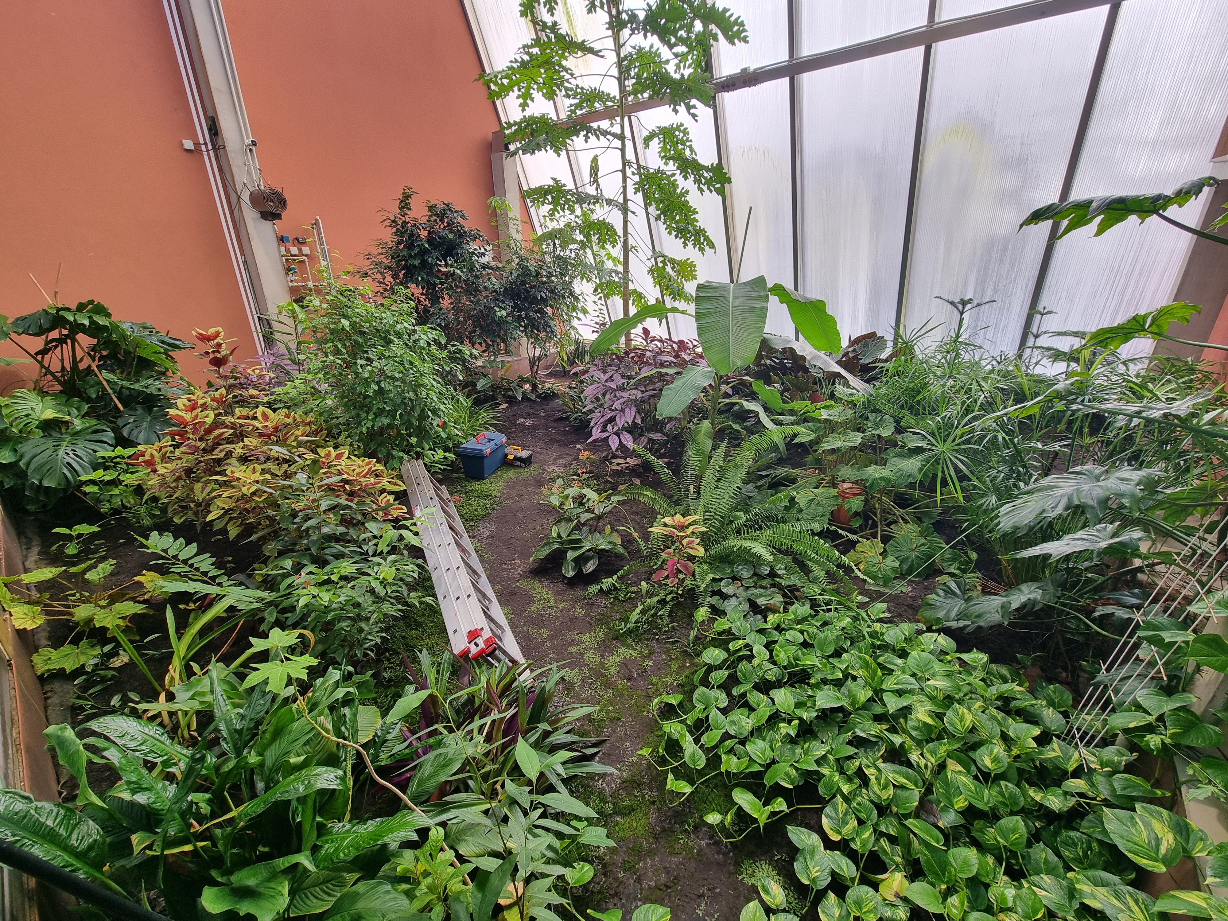Теплиця Томаша — це не маленька споруда: її розміри — вісім з половиною метрів на вісім метрів і шість з половиною метрів у висоту. У ній ростуть папая, банани, какао-боби та десятки інших екзотичних рослин.